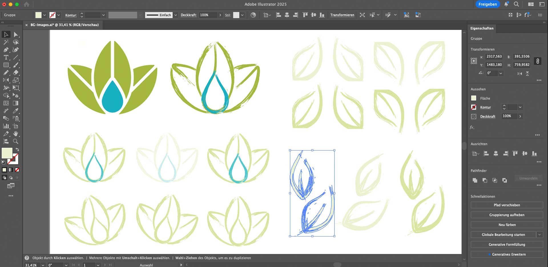 Neben Logo und Icons habe ich kleine dekorative Hintergrundelemente gestaltet, die sich perfekt in das Layout einfügen. In Illustrator habe ich die Wellen-Pinselform aus den Elementor-Sections aufgegriffen und in denselben Stil eigene grafische Formen entwickelt. Diese Elemente wurden im Hintergrund eingesetzt, sodass Design & Inhalt harmonisch ineinandergreifen.