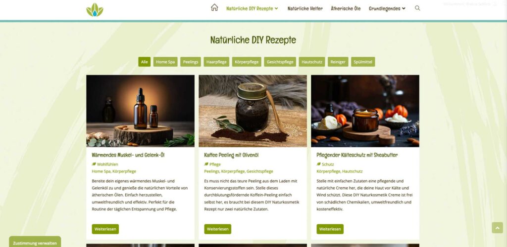 Die Idee entstand aus meinem persönlichen Interesse an alternativen Gesundheits- und Hausmitteln – und zeigt, dass ich neben Design und WordPress auch eigene Funktionalitäten entwickeln kann.