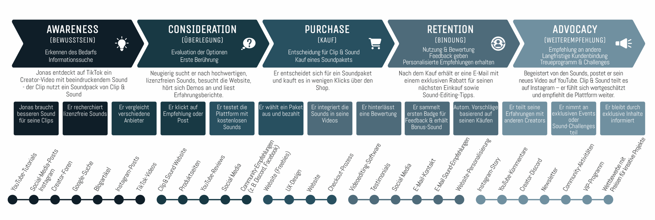 Personas & Customer Journey: kompakte Insights, die zeigen, wie Nutzerbedürfnisse Layout, Inhalte und Checkout-Flow formen. Ein winzig kleiner Auszug: