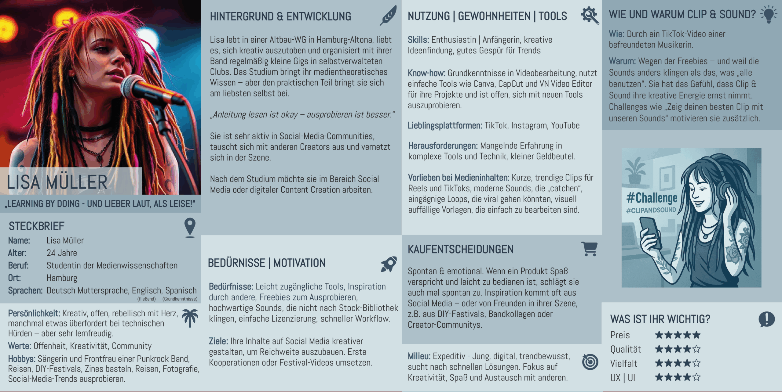 Lisa repräsentiert als secondary Persona eine junge, kreative Zielgruppe mit wenig Kaufkraft – aber großem Einfluss.