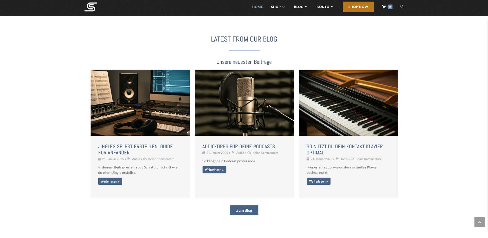 Für meine Projektarbeit im Modul „E-Commerce“ habe ich ein reales Anliegen aus meinem Umfeld aufgegriffen: Mein guter Freund Ben wünschte sich einen Shop für digitale Audio-Produkte (virtuelle Instrumente, Sound-FX). Das Projekt war nicht vom Kurs vorgegeben — ich habe es bewusst gewählt, weil sich dadurch Praxis und Theorie ideal verbinden ließen.