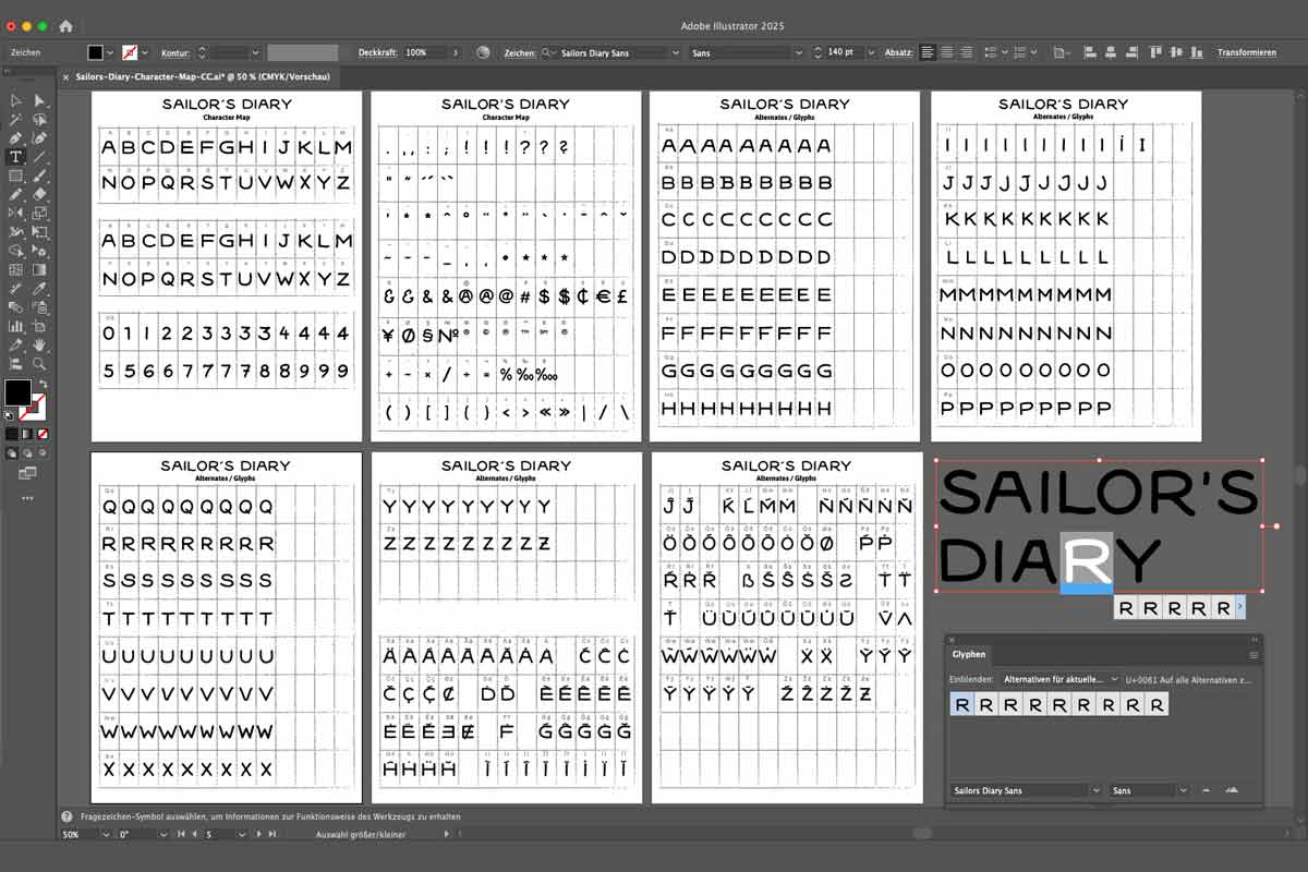Jedes Zeichen beginnt mit einer Zeichnung und wird Schritt für Schritt zur installierbaren Systemschrift – inklusive Umlauten, Satzzeichen und Sonderzeichen.